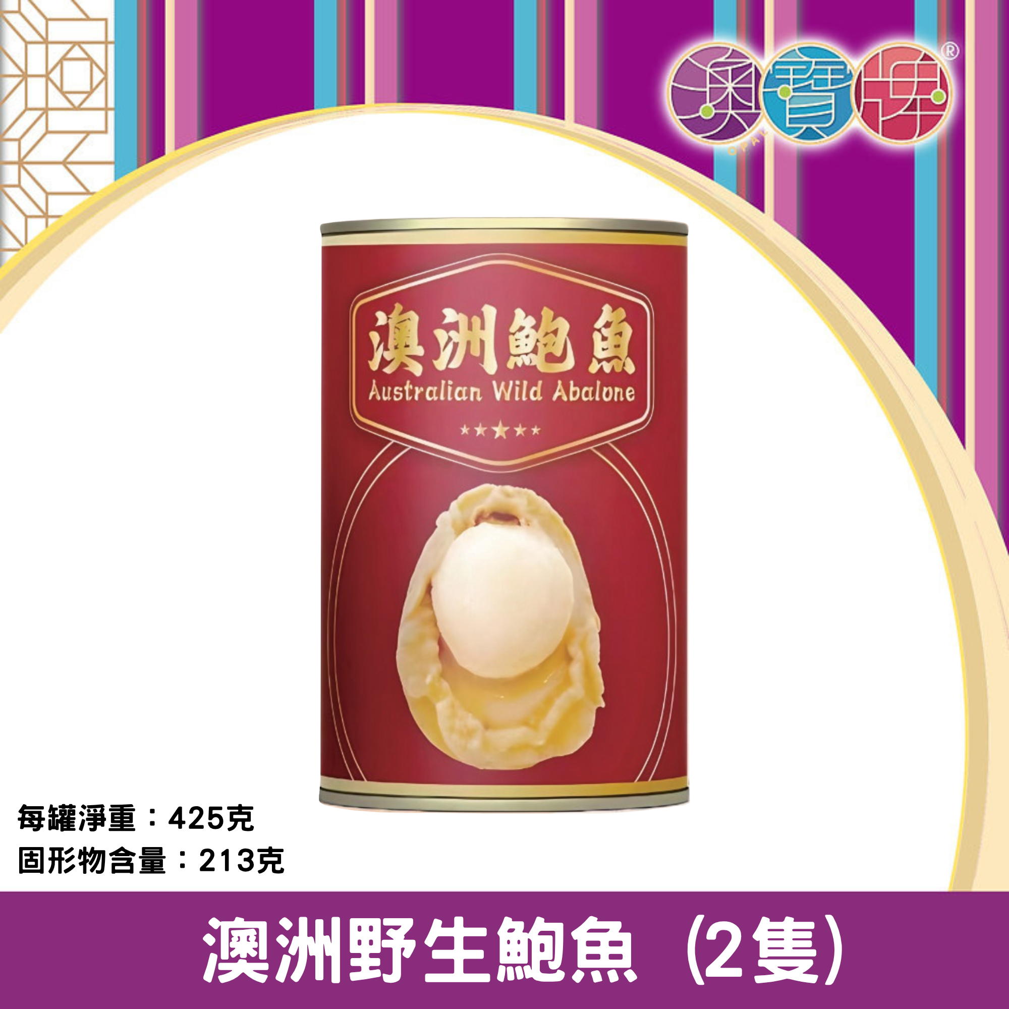 1罐 X 澳洲野生鮑魚 AUS (2隻) (425克 / 固體213克)